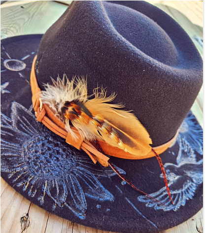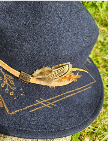 Each Pyro Hat is a one-of-a-kind, hand-burned piece of wearable art. They are born from intention, heat (literally), and a wild spark of whatever magic is running through me that day. With over 10 years of pyrography under my belt and a lifetime as an artist, I create pieces that carry personality and power for those who wear them.